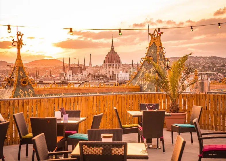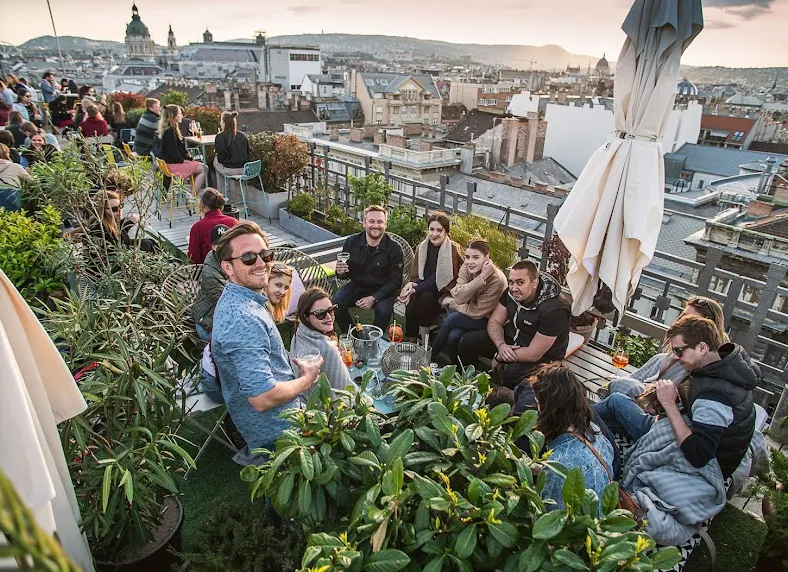 부다페스트 시내에 있는 프레지던트 호텔 옥상의 루프탑 바로, 여행객뿐만 아니라 현지인들에게도 인기 있는 곳이에요. 좋은 자리를 원한다면 예약하는 걸 추천해요.