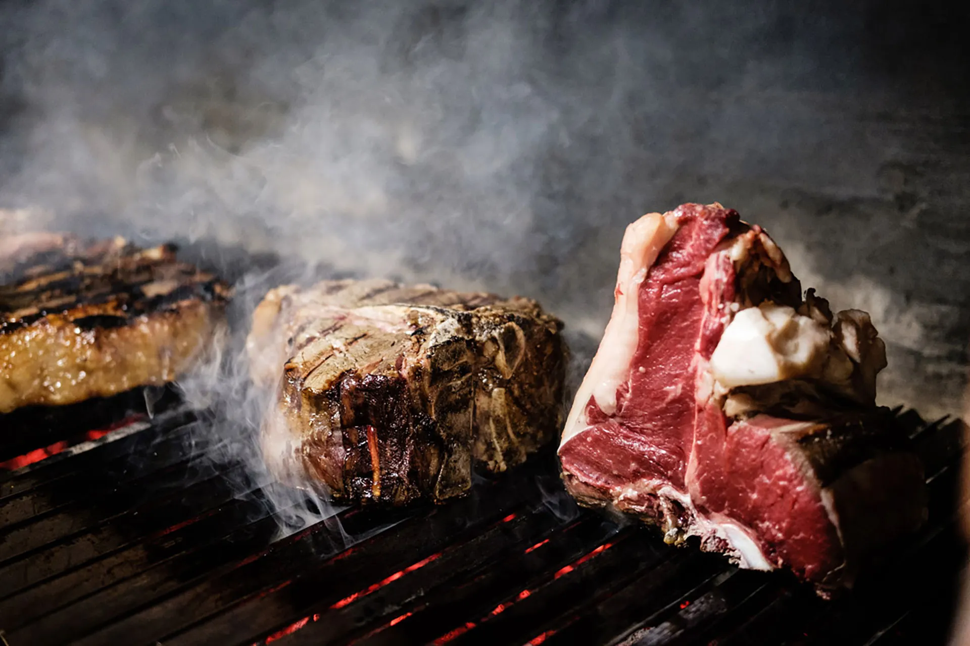 ‘비스테까 알라 피오렌티나’라는 이름을 갖게 된 시점은 1800년대 초로 추정되는데, 피렌체 지역을 지배하던 메디치 가문이 피렌체 축제 중 하나인 ‘페스타 디 산 로렌초(Festa di San Lorenzo)’ 기간에 뼈에 붙은 소고기를 모닥불에 구워 군중들에게 나눠줬다고 해요. 이때 일부 영국 기자들이 행사에 참석하여 고기를 먹으며 비프 스테이크라고 부른 것이 현재 이탈리어로 번역되어 비스테카(Bistecca)라는 단어가 만들어졌다고 합니다.