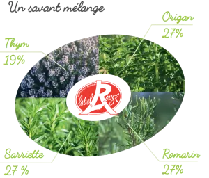 에르브 드 프로방스는 허브 종류인 ‘세이보리’와 ‘로즈마리’, ‘오레가노’가 각 27%, ‘타임’이 19% 비율로 섞여 있는 블렌디드 허브랍니다. 숯불에 구운 음식이나 프로방스 지역의 전통 음식, 소테 요리 등에 자주 사용돼요.