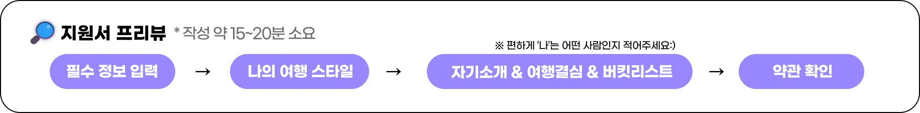 이번 여행이 나에게 어떤 의미인지, 나는 어떤 사람인지 솔직한 이야기를 써주면 됩니다. 부담 NONO!