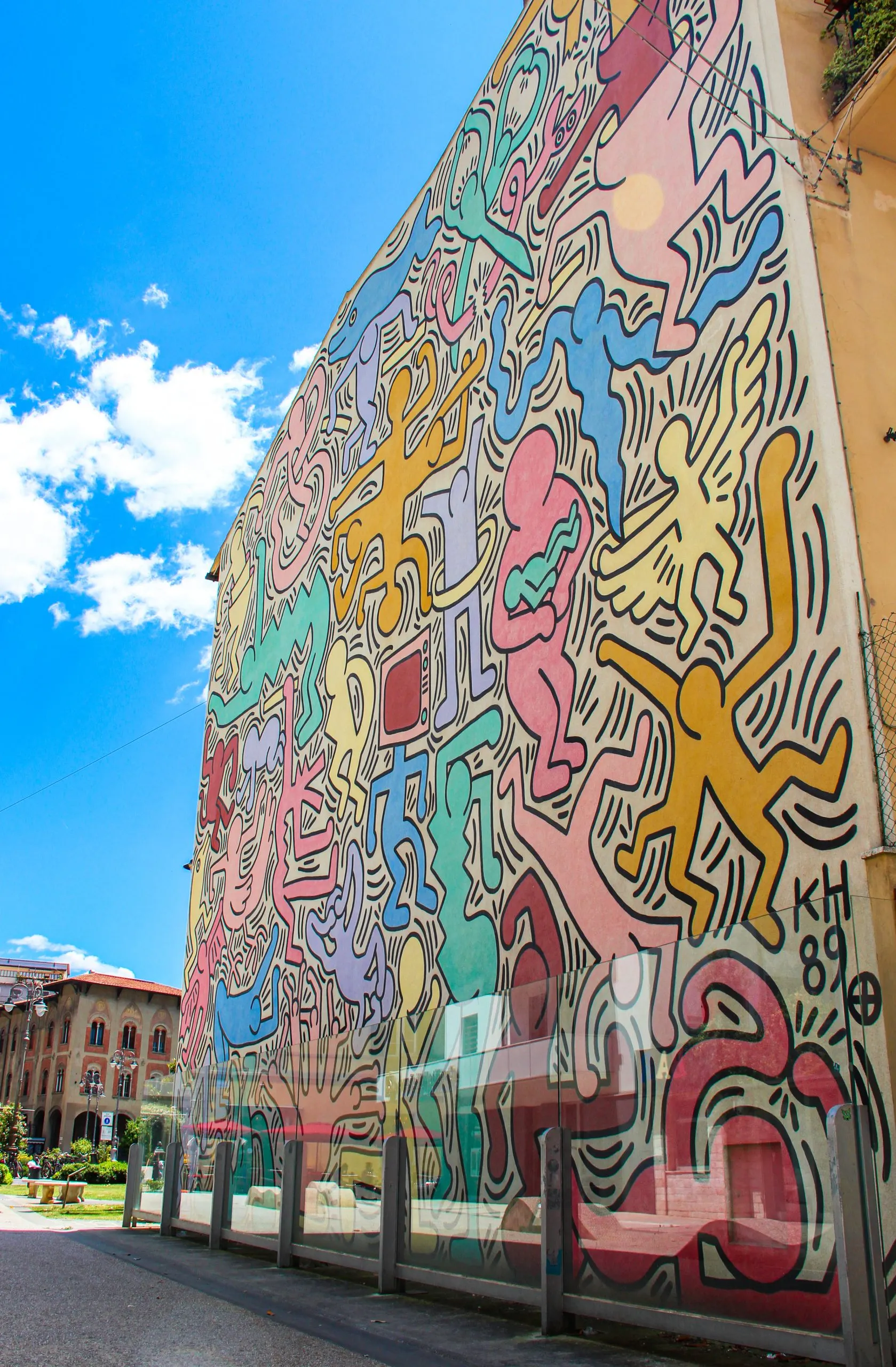 거리의 끝까지 걷다 보면 키스 해링의 작품도 만나볼 수 있답니다. 이름은 투토몬도(Tuttomondo)인데, 성벽에 그려진 대형 벽화로, 키스 해링의 유럽 최대 작품이라고 해요. 이 작품은 1989년에 완성되었으며, 키스 해링이 일주일 동안 직접 그려 완성했죠.