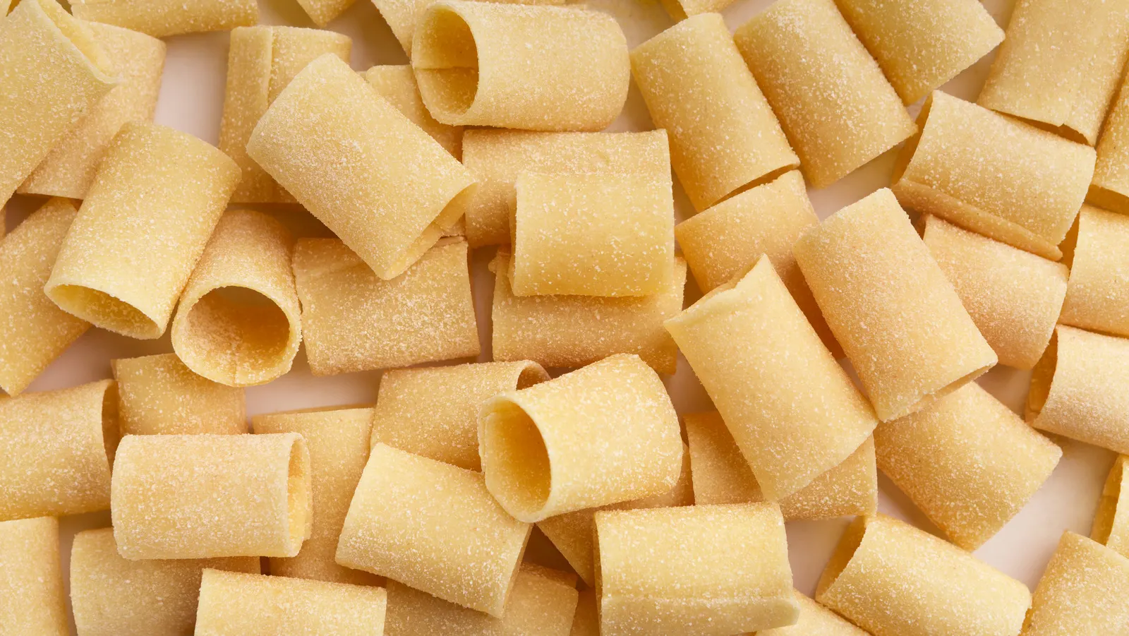 펜네처럼 파이프 모양으로 생겼지만, 더 굵고 끝 부분이 일직선인 것이 특징이에요.