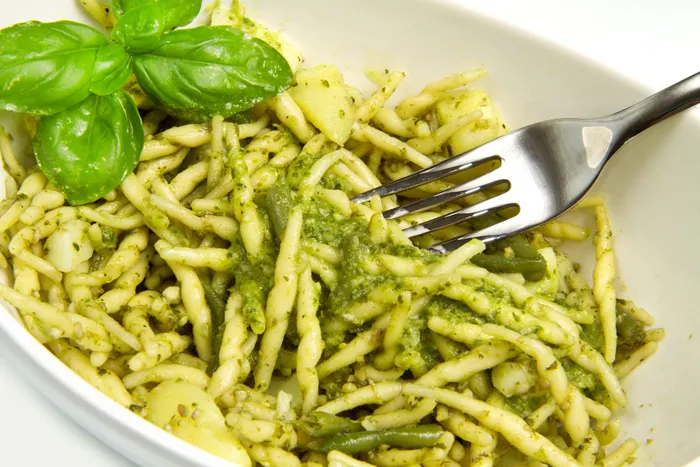 페스토(Pesto)는 페스토 알라 제노베세(Pesto alla genovese)라고도 불리며, 이탈리아 제노바에서 만들어진 소스입니다. 빻은 마늘, 잣, 굵은 소금, 바질 잎, 파르미자노 레자노, 페코리노 사르도 치즈를 올리브유와 갈아서 만든 녹색의 소스예요. 토마토 베이스, 크림 베이스, 오일 베이스 그 어떤 종류의 파스타와도 잘 어울린답니다.