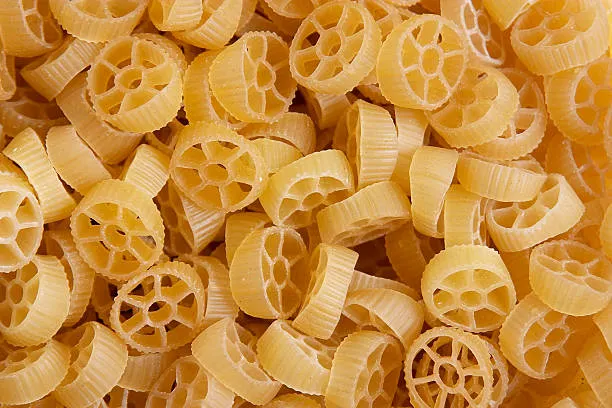 수레바퀴처럼 생긴 면입니다. 샐러드나 냉파스타에서 가벼운 소스와 곁들여 많이 사용하는 종류랍니다.