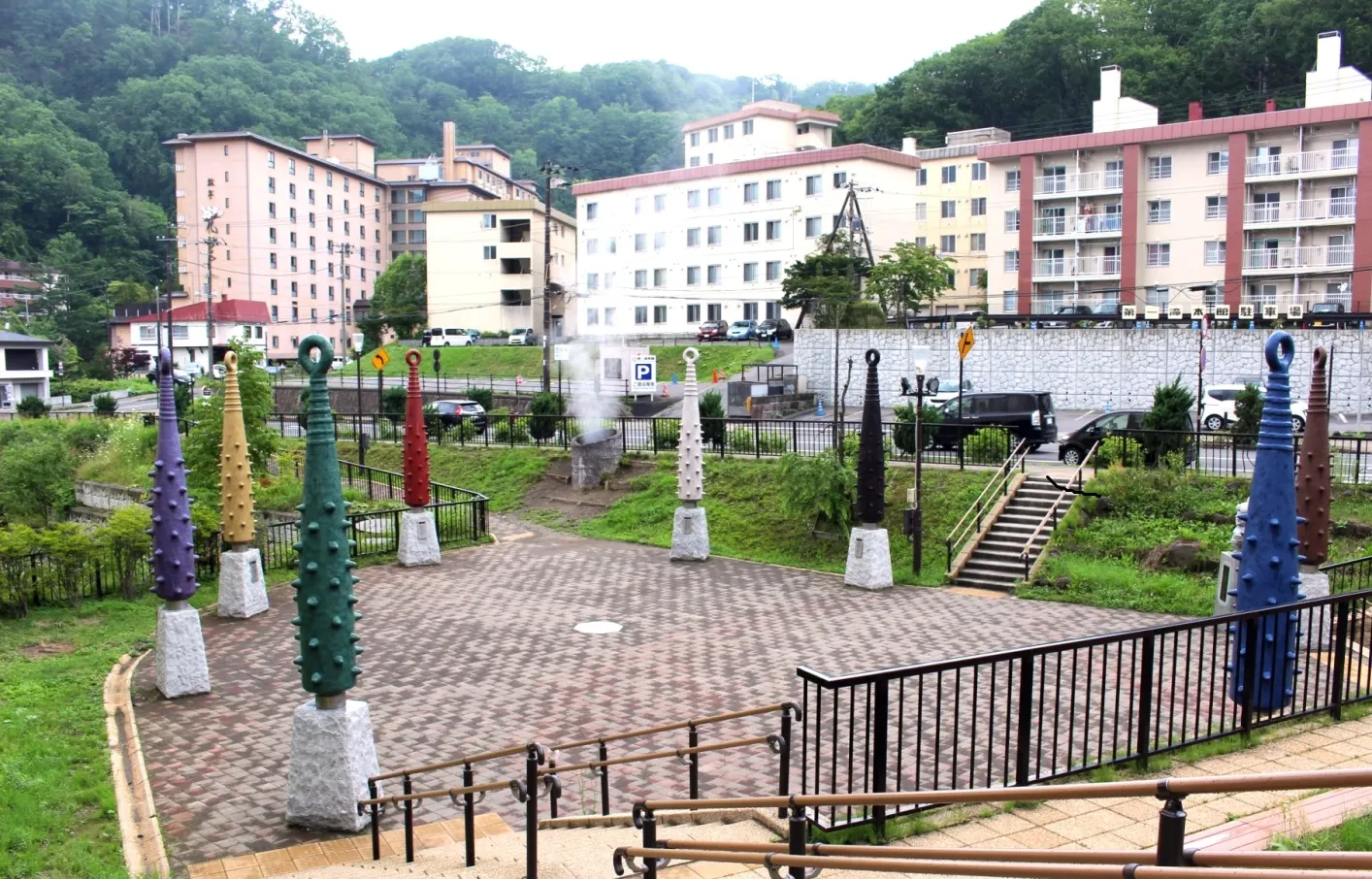 지옥 계곡에서부터 흘러온 온천수를 내뿜는 간헐천을 볼 수 있는 공원이에요. 수증기와 함께 분출하는 간헐천이 3시간마다 50분간 분출해 시간이 맞다면 온천수의 괴성을 들을 수 있답니다.