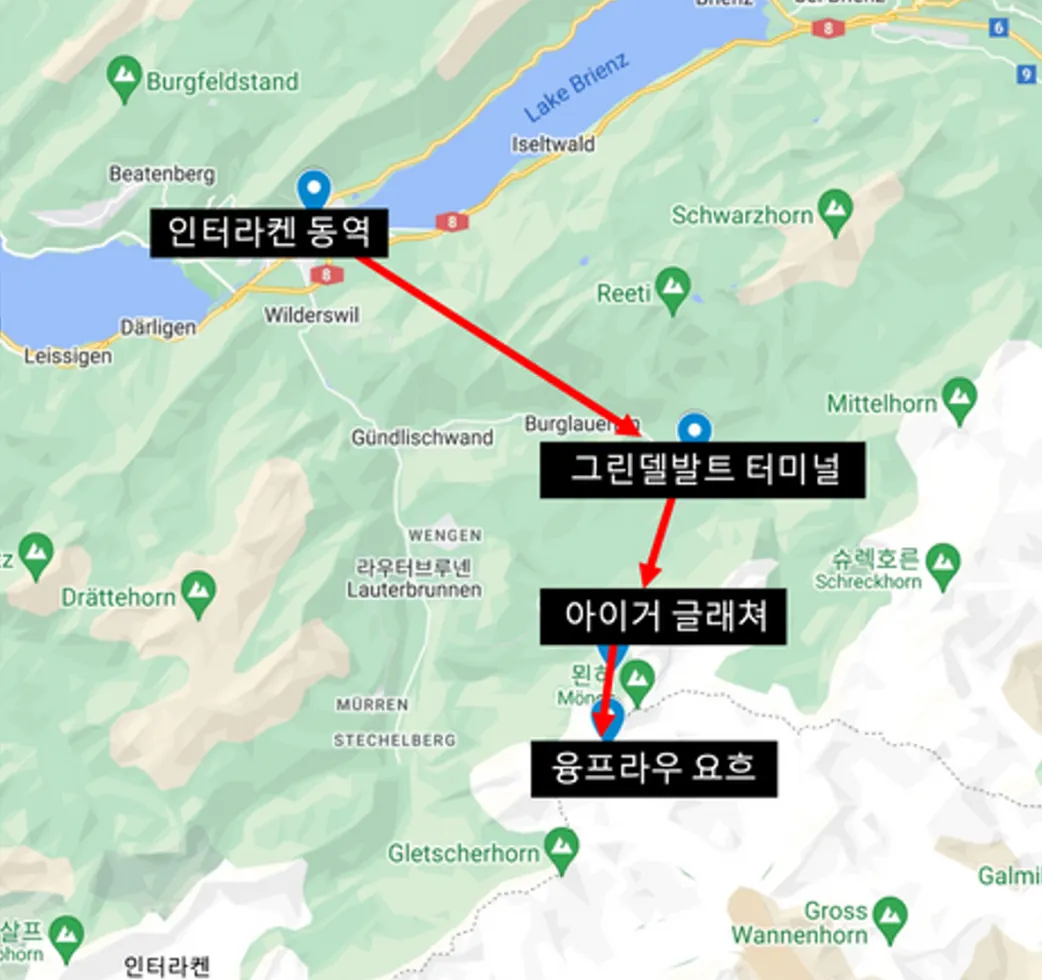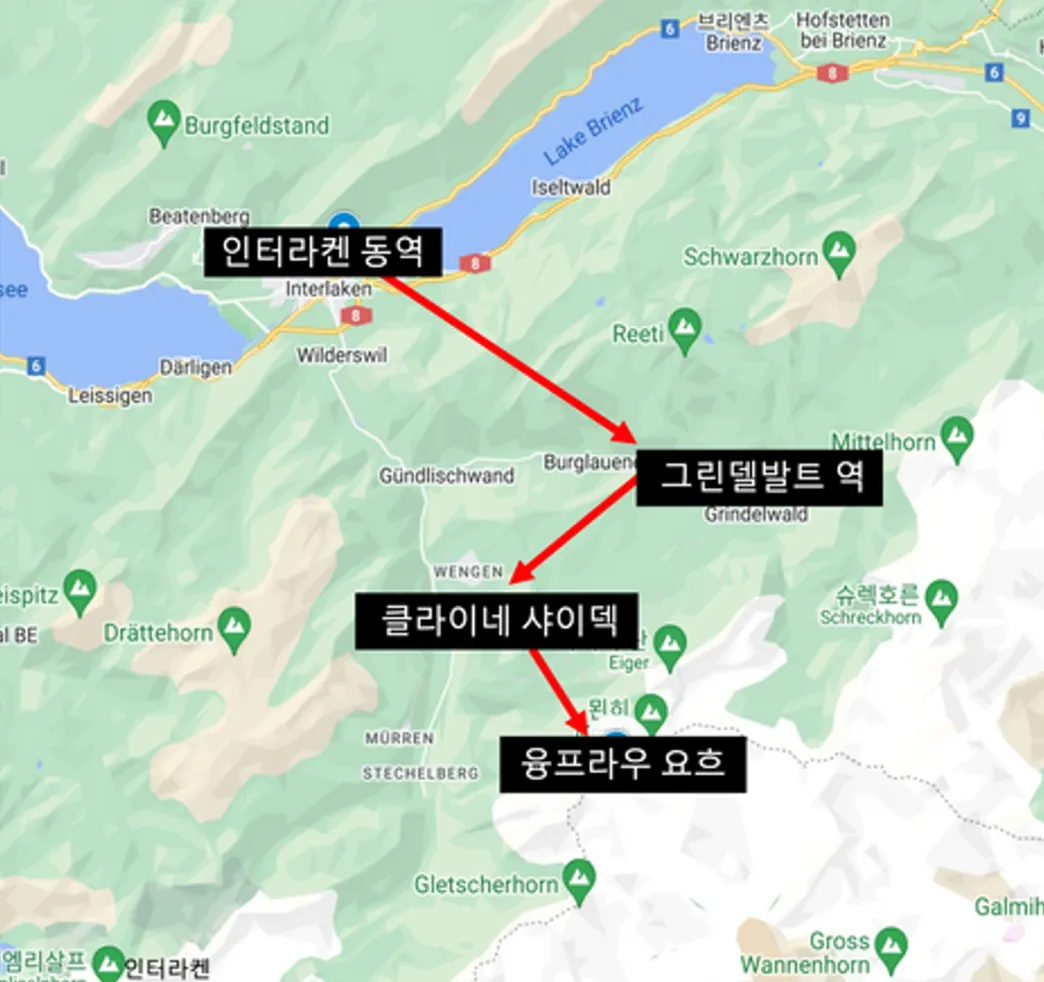 클라이네 샤이덱 → 융프라우 정상 기차 환승