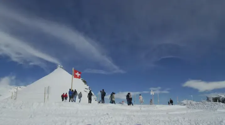 융프라우 정상에서 스위스 국기 인증샷 찍기