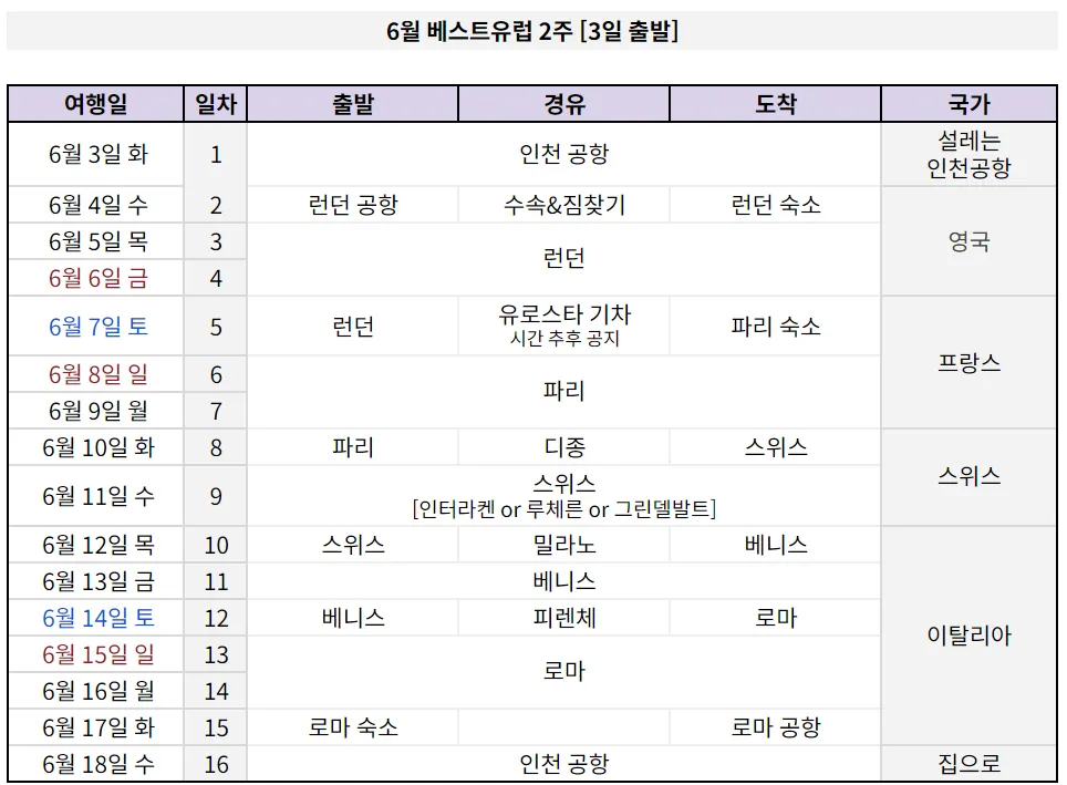 베스트유럽 2주 경유 도시