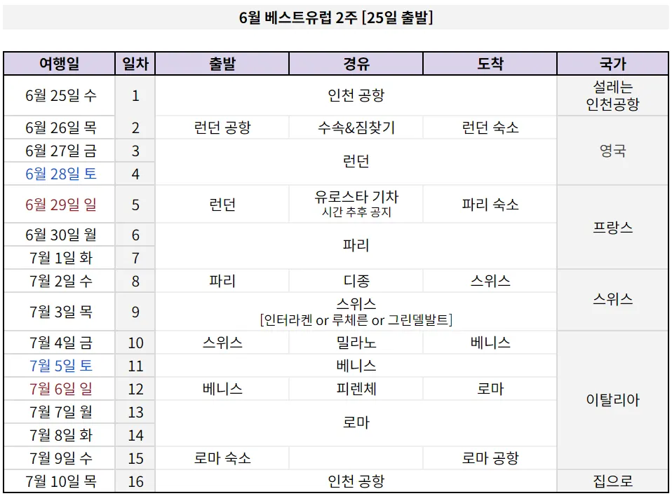 도시 별로 추천하는 일정을 넣어드린 것이니 참고해주세요.