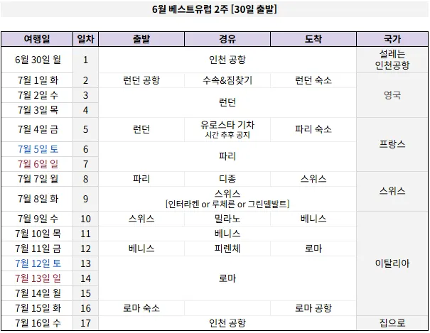 베스트유럽 2주 경유 도시