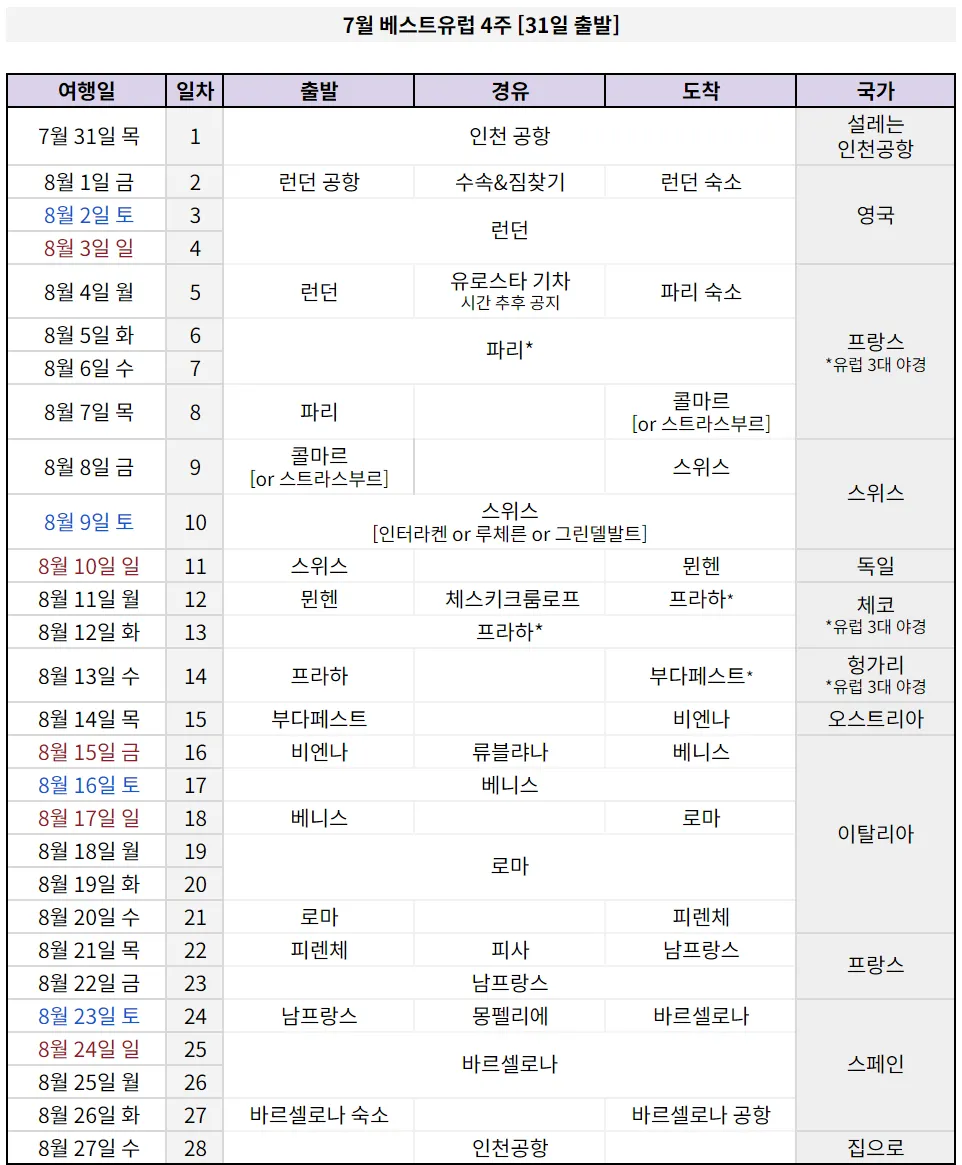 도시 별로 추천하는 일정을 넣어드린 것이니 참고해주세요.