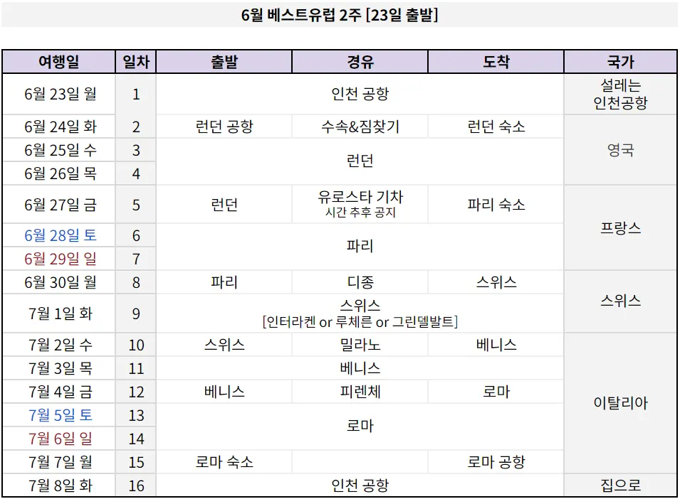 도시 별로 추천하는 일정을 넣어드린 것이니 참고해주세요.