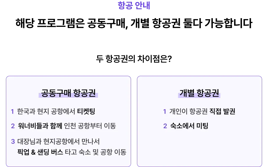 현지 사정에 따라 도시 및 일정이 바뀔 수 있습니다.