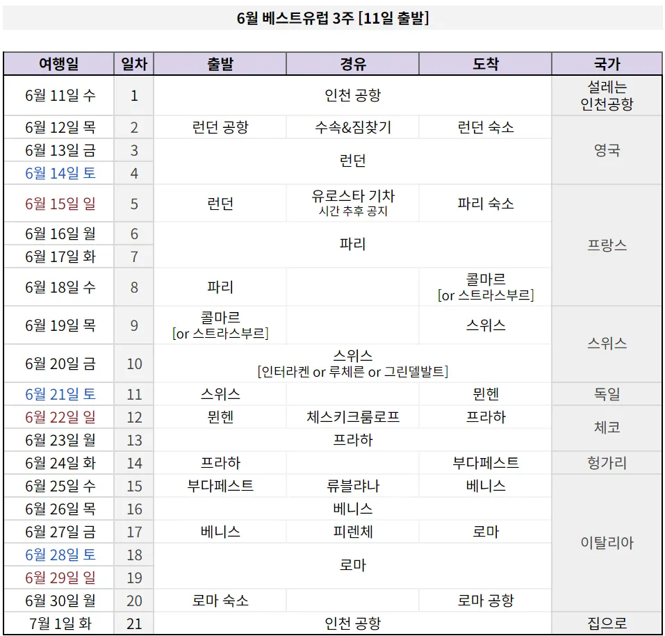 도시 별로 추천하는 일정을 넣어드린 것이니 참고해주세요.
