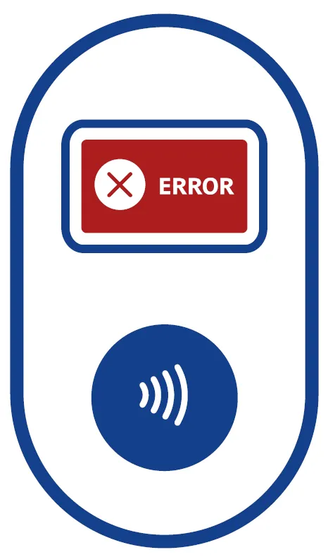 잔액 부족 등으로 결제가 실패하면 빨간색 화면이 뜹니다.
