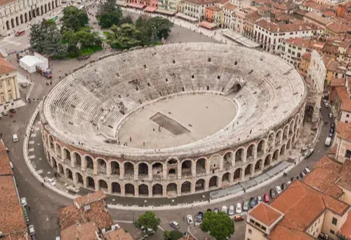중세 시대부터 아레나의 아치형 갤러리인 아코 볼리는 시의회에서 임대했고 16세기까지 매춘부들이 사용했고 나중에는 장인들이 사용했습니다. 안쪽 부분은 사법을 집행하거나 파티, 쇼, 경주 등 다양한 용도로 사용되었습니다. 1913년 아레나에서는 베르디의 아이다 초연이 열렸고, 그 이후로 여름 오페라 시즌이 열리는 장소가 되었어요.