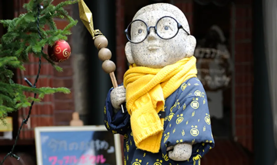 중앙에 데누키코지를 상징하는 작은 동상이 하나 있어요.