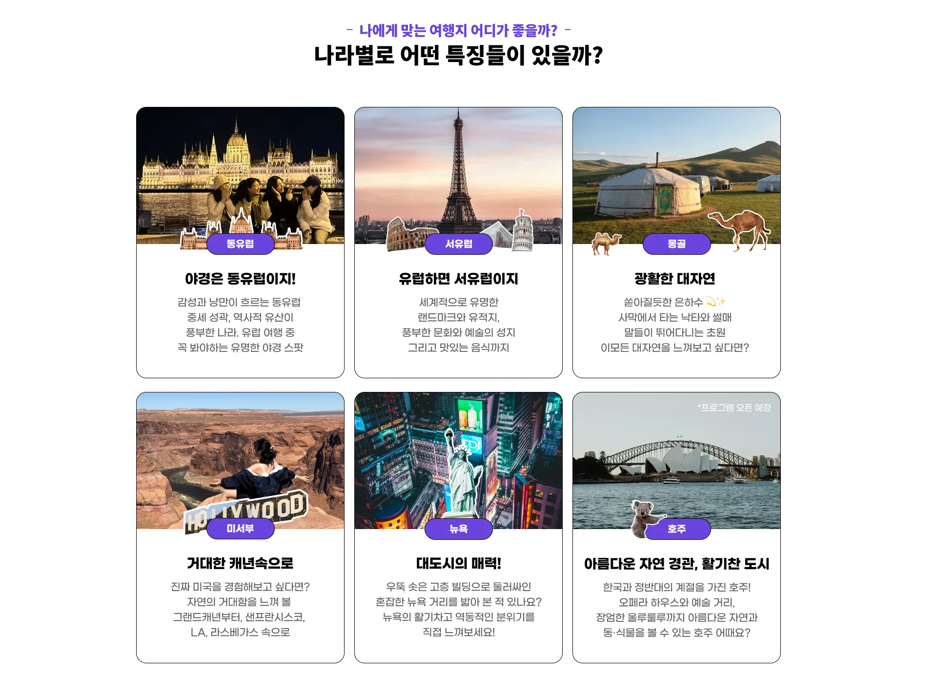 ※ 같은 나라를 가지만 여행 도시가 차이 나는 곳들은 파란색으로 표기했습니다.