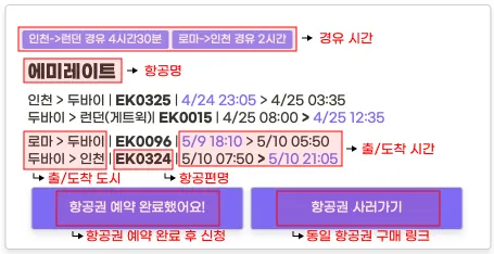 예약 완료되었다면 [항공권 예약 완료했어요!] 클릭 후 신청 해주세요!
