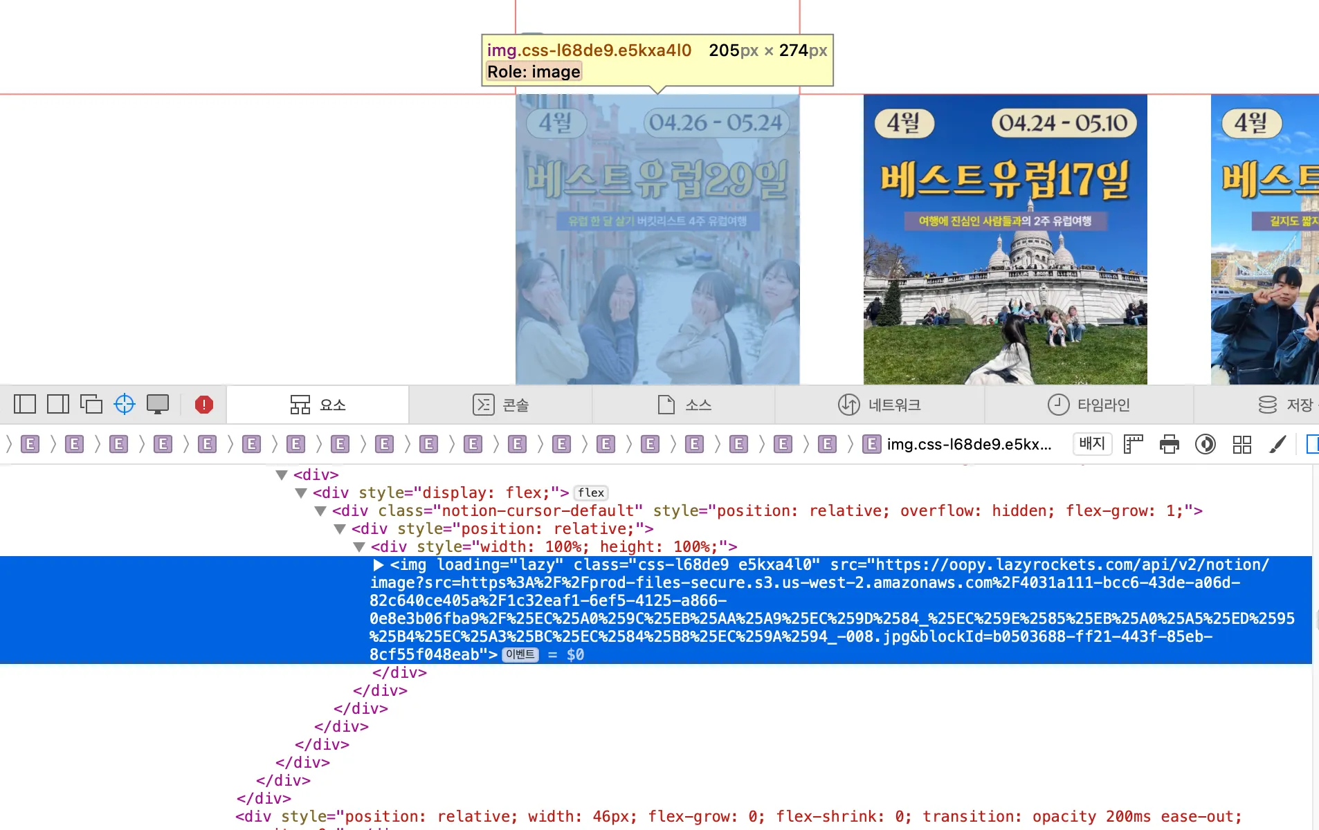 2. 개발자모드로 해당 이미지/영상(요소 src=””) 선택하기