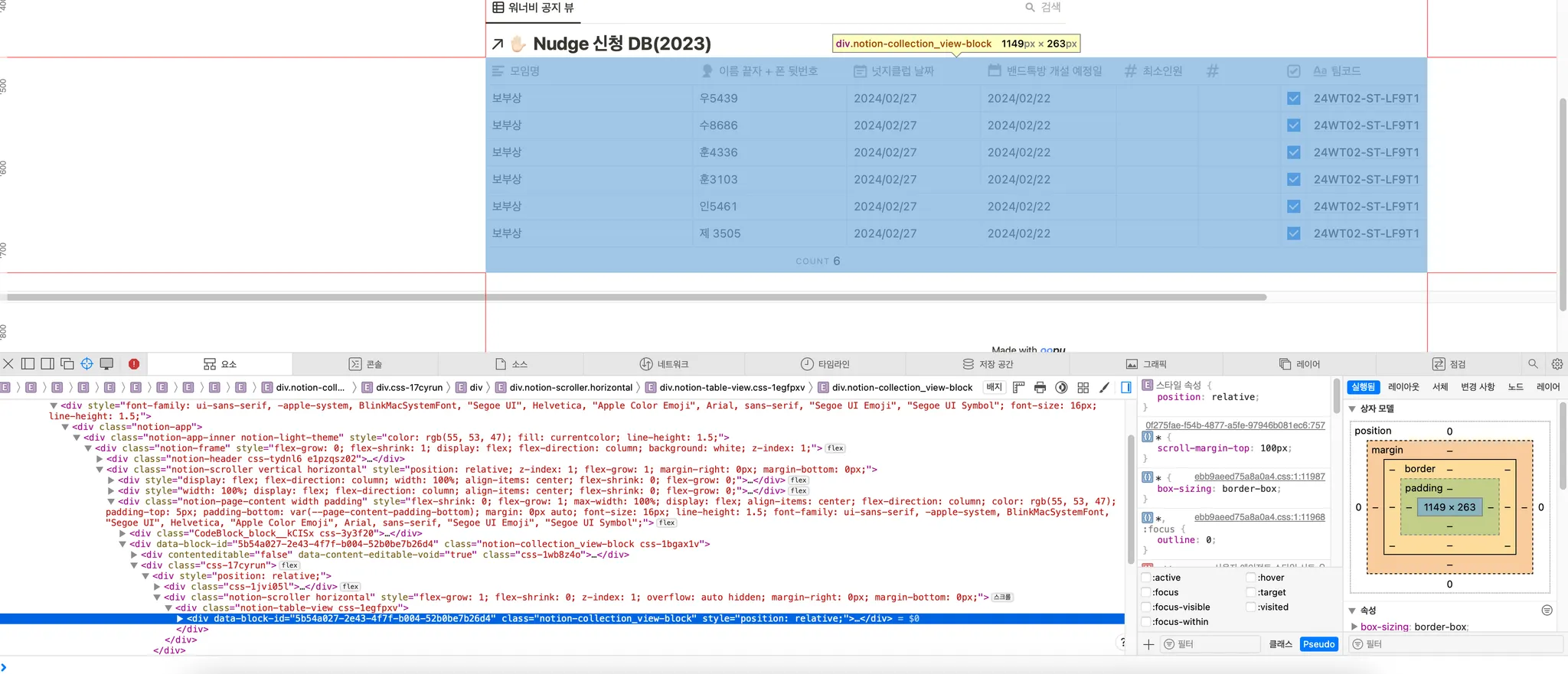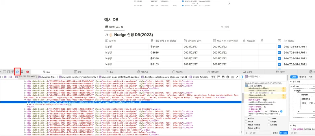 요소 선택을 클릭한 채로 db 근처에 가면 자동으로 구역을 인식해요.
