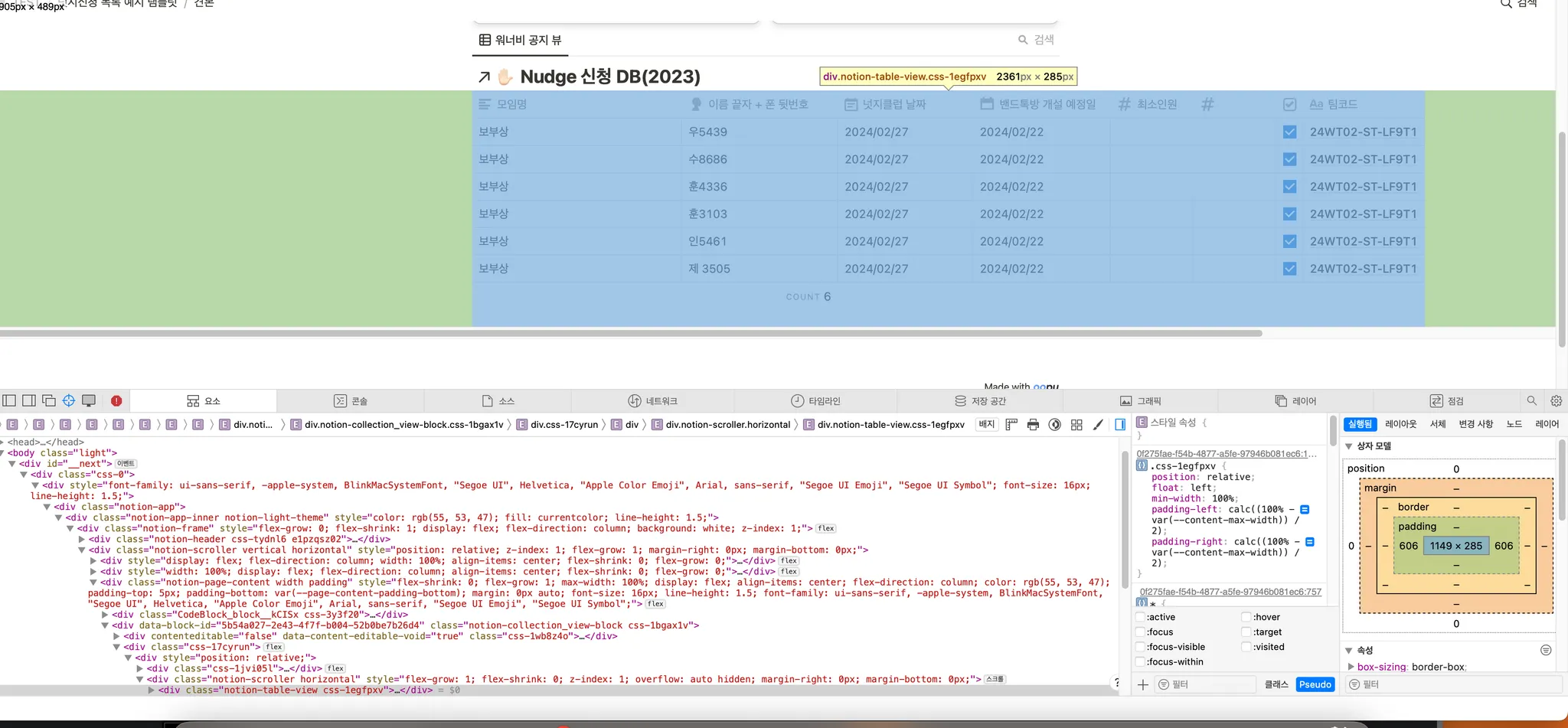 “nudge 신청 db” 검색 후 nudge 신청 db(2023)을 불러오기