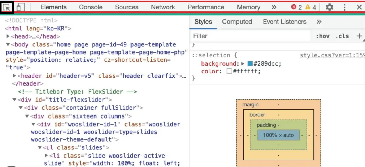 사진 속 빨간 네모 안에 있는 아이콘이 요소 선택이에요!
