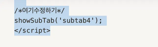 showSubTab(’바꾸려는 탭바 넘버’) 변경하기