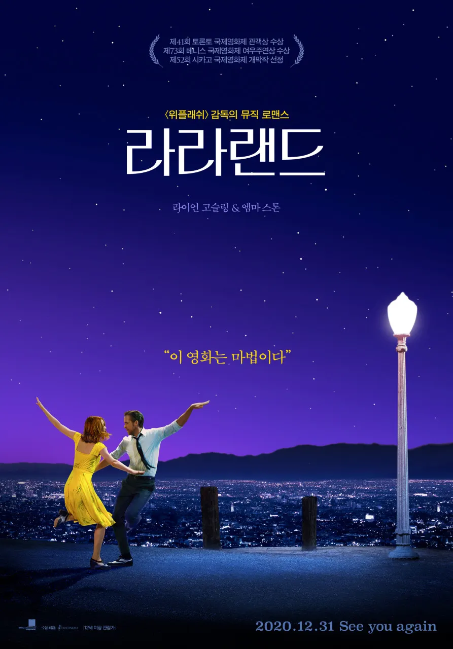 ์ ๋ชฉ์์ ์ ์ ์๋ฏ์ด ๋ผ๋ผ๋๋(La La Land)๋ ๋ก์ค์ค์ ค๋ ์ค๋ฅผ ๋ฐฐ๊ฒฝ์ผ๋ก ํผ์ณ์ง๋ ์ํ์