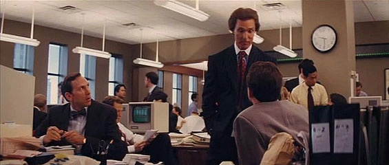 조던 벨포트(레오나르도 디카프리오)는 1987년 마크 해나(매튜 매코너헤이) 밑에서 LF 로츠차일드의 주식 중개인으로 뉴욕 월가(wall street)에서 일하기 시작합니다 . 조던은 주식 중개인의 삶과 문화가 방탕함으로 가득 차 있다는 것을 금세 알게 됩니다. 공격적인 피칭 스타일 덕분에 많은 돈을 벌게 됩니다. 그는 이웃인 도니 아조프(조나 힐)와 함께 스트래튼 오크몬트라는 회사를 차립니다. 그들은 몇몇 친구를 고용하고, 조던은 그들에게 "강력한 판매"를 하는 방법을 가르칩니다.