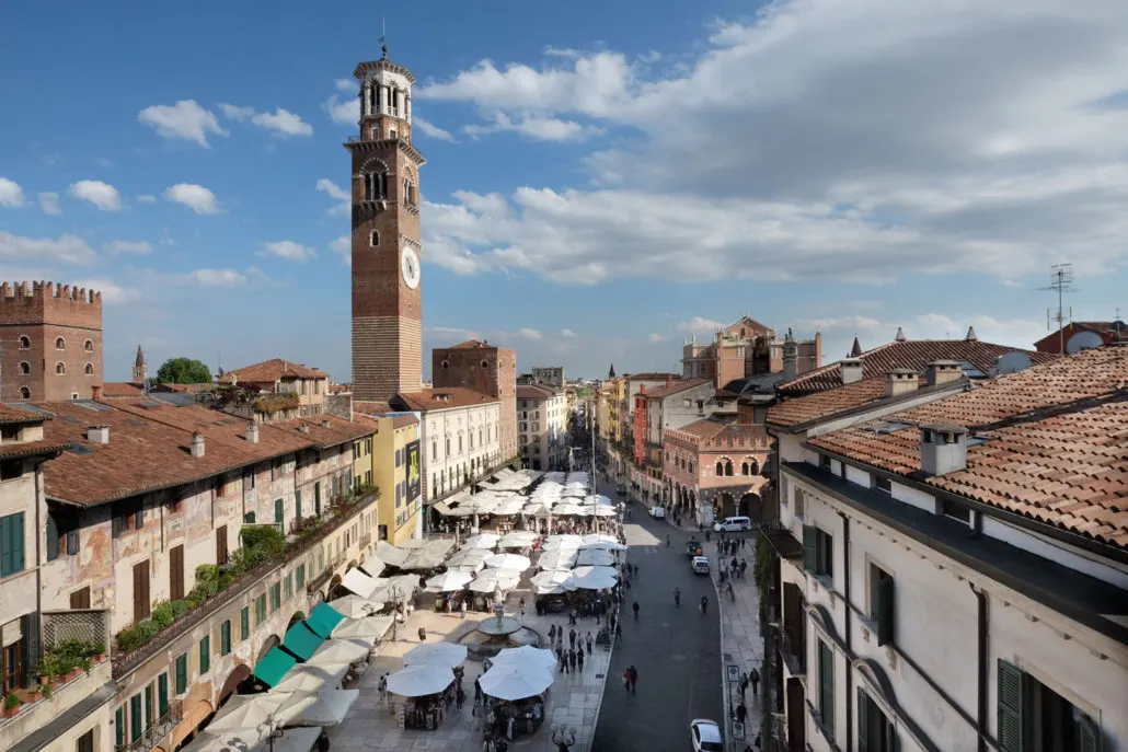 상시 오픈에어 마켓이 열리는 에르베 광장과 이탈리아어의 아버지이자 시인인 단테 알리기에리의 조각상이 있는 시뇨리 광장은 베로나의 중심가입니다. 중세 시대로 돌아간 것만 같은 건축물들을 즐겨주세요.