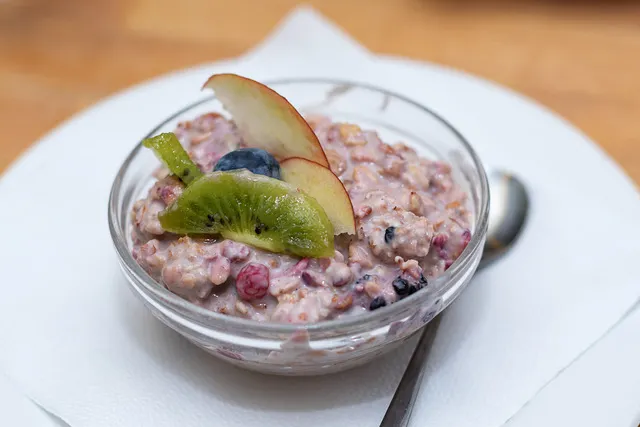 ๋์ ์ค์์ค์ ์์ฌ ๋ง์๋ฐ๋ฆฌ์ ๋น๋ฅดํค๋ฅด-๋ฒ ๋(Maximilianย Bircher-Benner)๊ฐ ์ทจ๋ฆฌํ์์ ์ด์ํ๋ ๊ฑด๊ฐ ํด๋ฆฌ๋์ ํ์๋ค์ ์ํด ์ฒ์ ๊ฐ๋ฐํ ๊ฒ์ด๋๋๋ค. ๊ทธ์ ๊ทธ์ ๋ถ์ธ์ด ์ค์์ค์ ์ํ์ค ์ฐ๋งฅ์ ํ์ดํนํ๋ ์ค ์ด๋ ์ฐ์ฅ์ ๋ค๋ฌ ์๊ณผ์ผ๊ณผ ๊ณก๋ฅ๋ก ๊ตฌ์ฑ๋ ๋ฏ์ ์์์ ๋ง๋ณด๊ฒ ๋์๋๋ฐ, ์ด๋ฅผ ํ๋์ ์ผ๋ก ๋ณํ์์ผ ๋ง๋ ๊ฒ์ด ๋ฎค์ฆ๋ฆฌ์ฃ .
