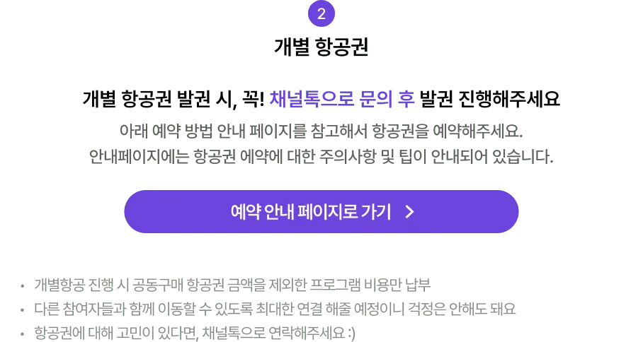 개별항공 이용 시 더 저렴하게 예약할 수 있는 시점입니다!