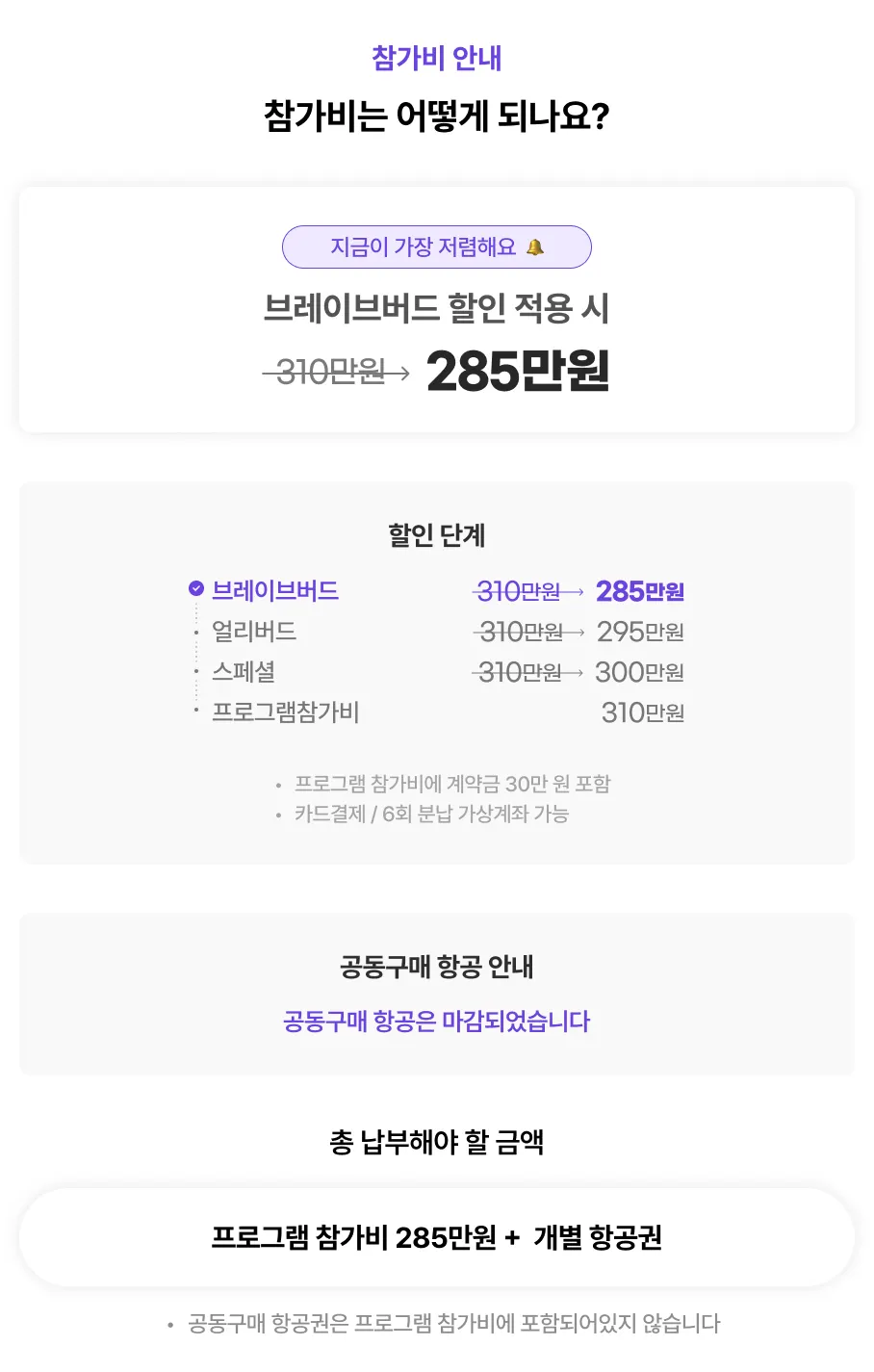 개별항공으로 참여하고 싶다면, 채널톡으로 문의 바랍니다!
