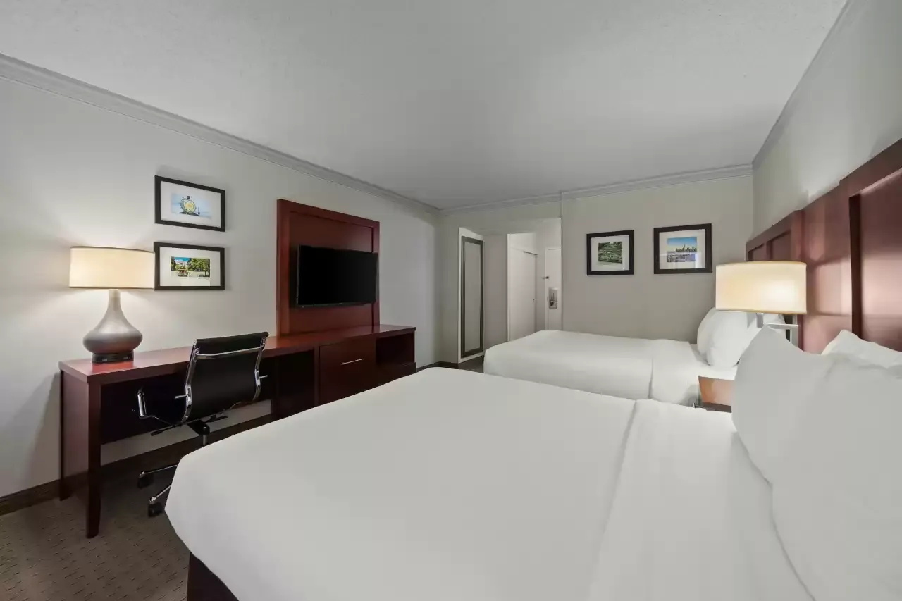 전형적인 숙소 타입으로 4 명이 한 방을 사용하며 더블사이즈 침대 2개 사용!(패밀리룸)