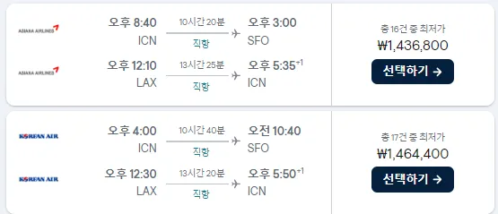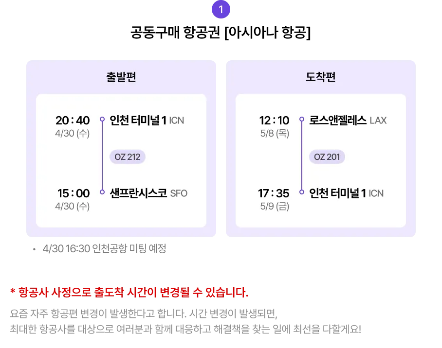 * 프로그램 일정에 맞춰 이동하고 싶다면 [샌프란시스코에 4/30 도착] [로스앤젤레스에서 5/8 출발] 일정으로 항공권을 예약해주세요.