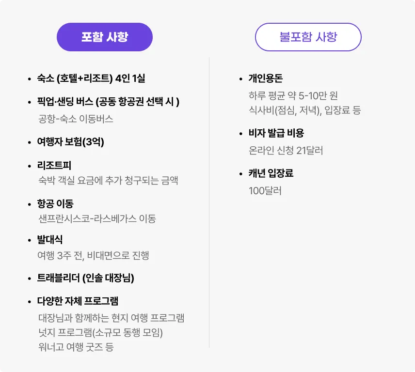 2일,4일~10일차 샌프란시스코 & 라스베가스 & 로스앤젤레스는 전일 자유 일정으로 조 별로 여행을 자유롭게 여행해요!