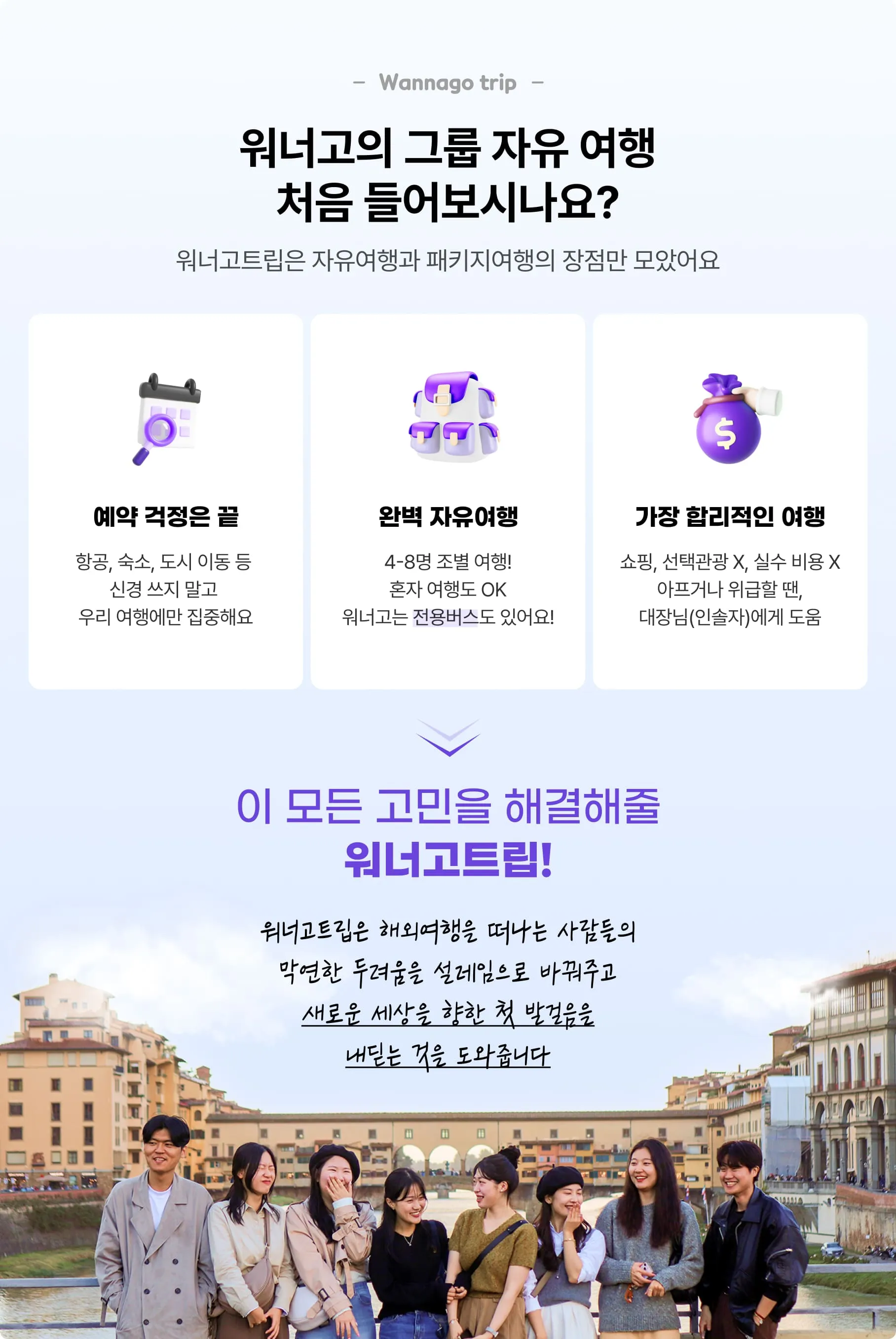워너고트립은 그룹 자유 여행으로 도시 내에선 자유 여행을 하는 프로그램입니다.
