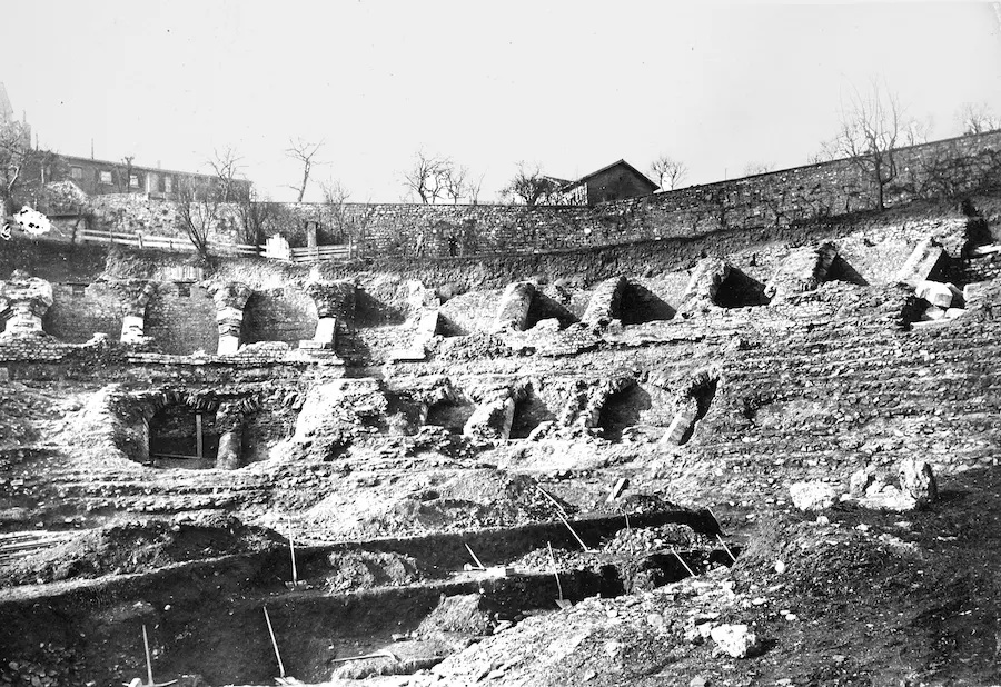 갈로 로마 극장은 리옹의 긴 역사를 간직한 장소이지만, 정확히 언제 지어진 것인지 확인할 수 있는 문서 기록은 없어요. 따라서 고고학자들은 건축 기술과 사용된 재료를 통해 추측해 냈는데, 극장 건축에 사용된 석회석이 기원전 1세기에 채굴된 프로방스 채석장에서 나왔다고 해요.