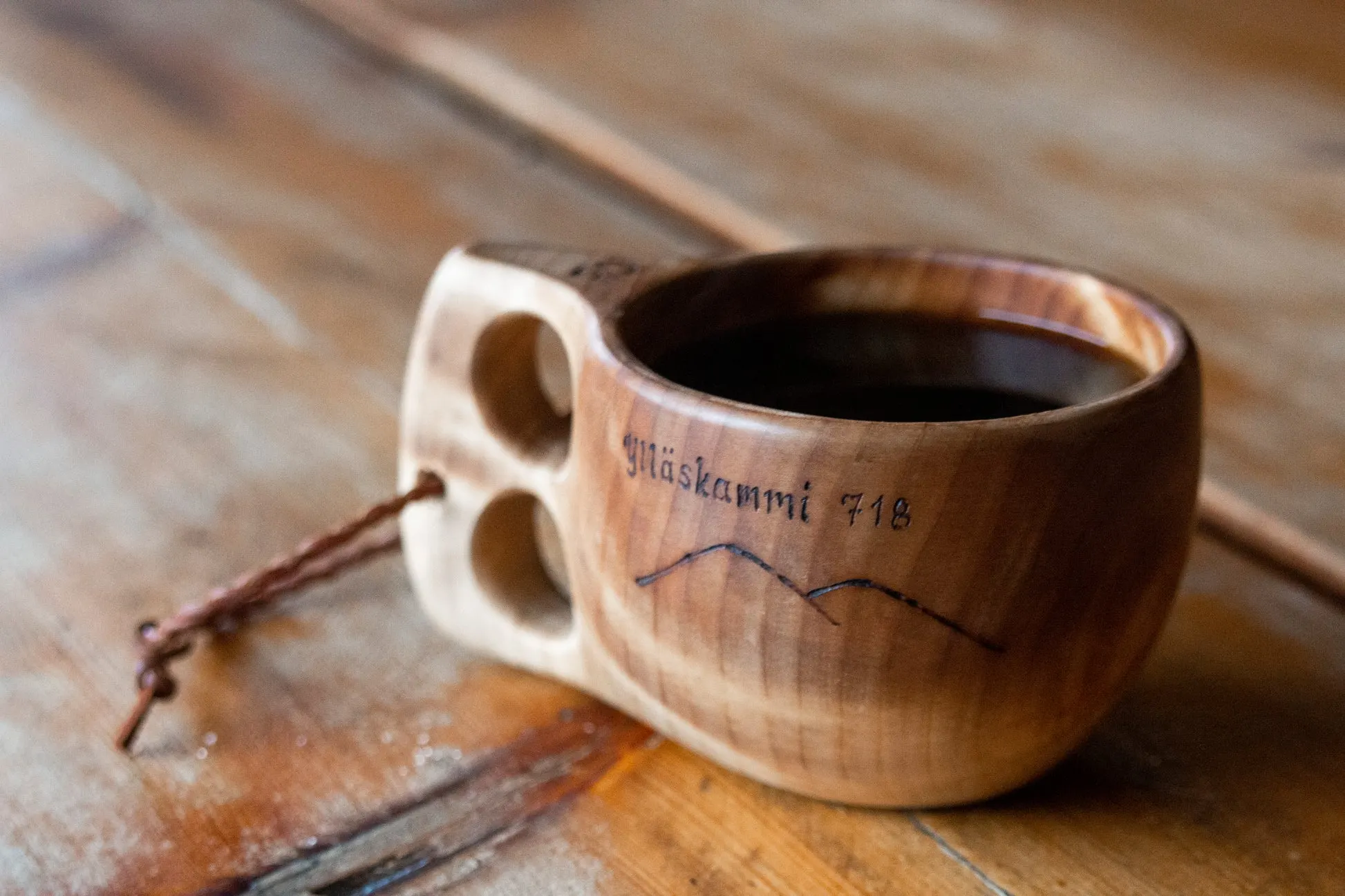 라플란드 전통 목제 컵인 쿠크사는 사리셀카 같은 자연 깊은 곳에서 많이 팔리는 대표적인 기념품으로, 사냥 및 낚시 등 야외활동에 실제로 사용이 가능한 소품이에요! 나무결과 모양이 각각 달라 세상에 하나뿐인 컵 느낌이 매력 포인트!