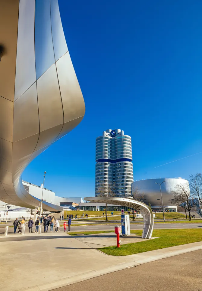 독일을 대표하는 자동차 BMW! 뮌헨에 BMW 박물관과 출고센터 겸 콘셉트 관인 BMW 벨트 (Welt)가 있어요. BMW 벨트에서는 최신 차량을 직접 보며 시승도 할 수 있고 상담과 구매까지 이루어지는 곳이에요. 독일어로 ‘Welt’는 영어로 ‘World’를 뜻하는데, ‘BMW 세상’이라는 이름처럼 최신 차량을 직접 보며 시승도 할 수 있고 상담과 구매까지 이루어지는 곳이랍니다. 유명 건축가들이 지은 이 건물 외관도 유명하니 자동차에 관심이 있다면 방문해 보세요!