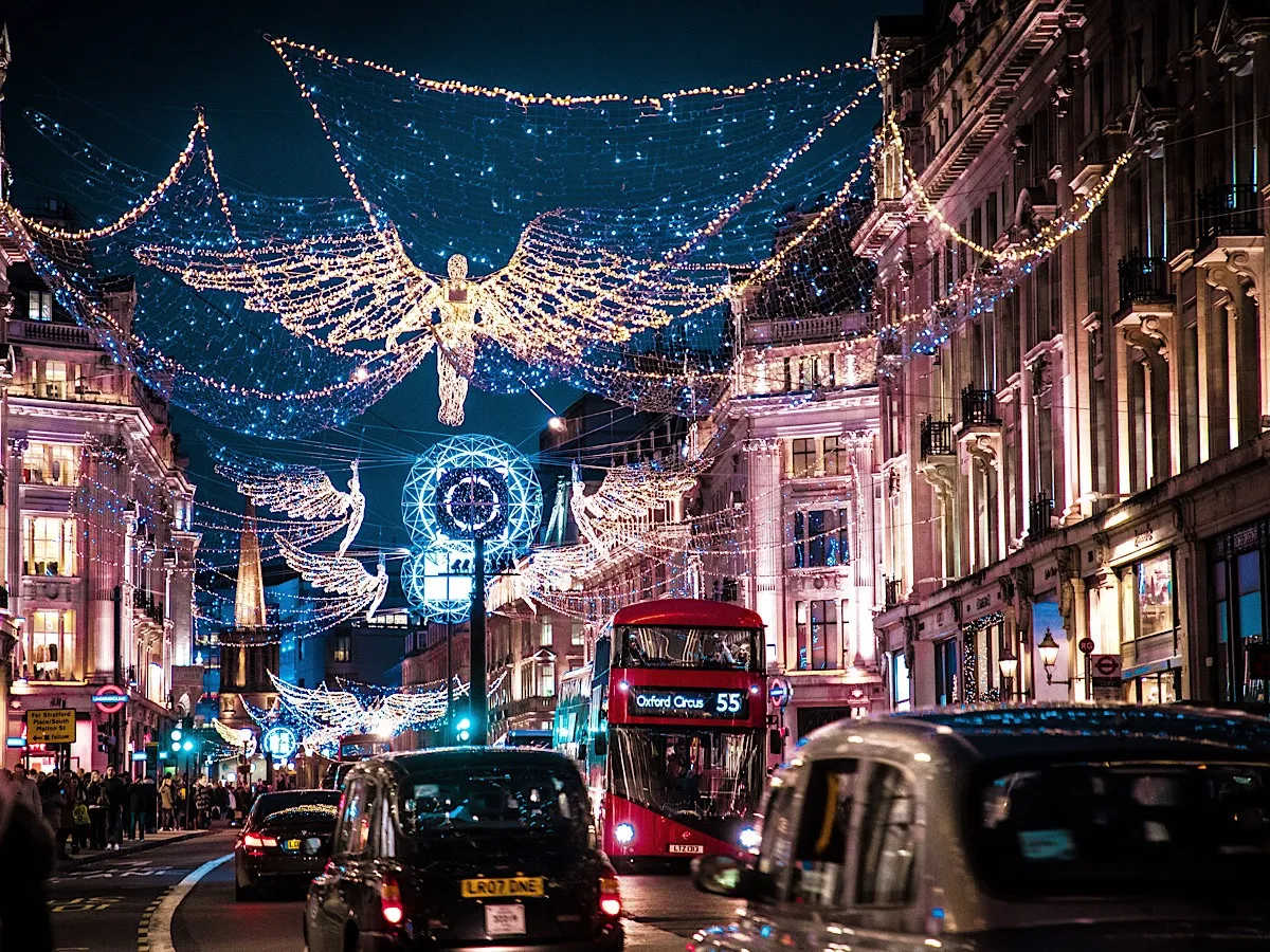 1954년 처음으로 크리스마스 조명을 시작한 리젠트 스트리트의 천사 장식은 런던뿐만 아니라 전 세계에서 가장 유명한 크리스마스 조명이기도 해요. 50개가 넘는 마법의 정령들이 거리를 빛내고 있으니 꼭 방문해 보세요!