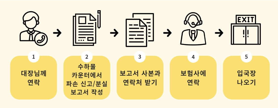 공항을 떠나기 전, 작성한 보고서의 사본과 담당자 연락처는 꼭 받아둬요.