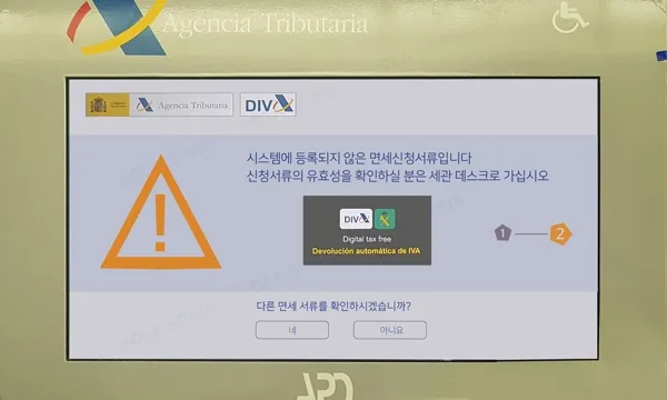 바코드를 기계에 읽혔는데 아래와 같이 ‘등록되지 않은 서류’라고 뜬다면, 오른쪽 세관으로 가서 세관원에게 직접 도장을 받아야 하니 참고해주세요.
