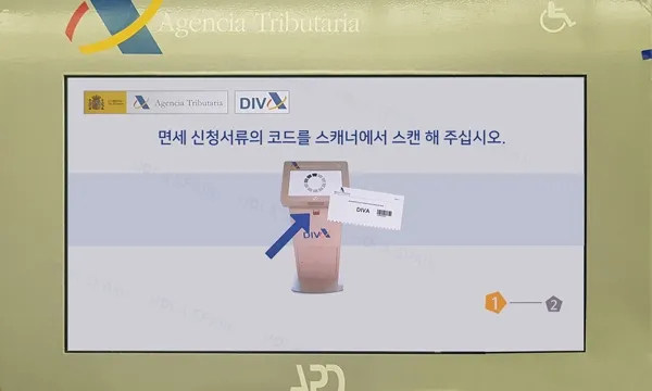 택스리펀 서류의 바코드를 기계에 읽히기