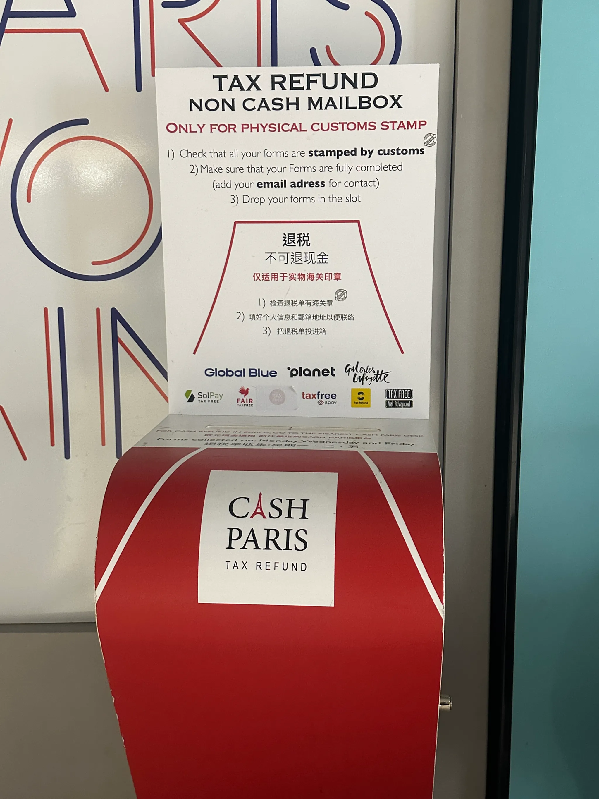 키오스크로 승인 받은 택스리펀 서류는 이제 따로 MAILBOX 에 넣지 않아도 됩니다.