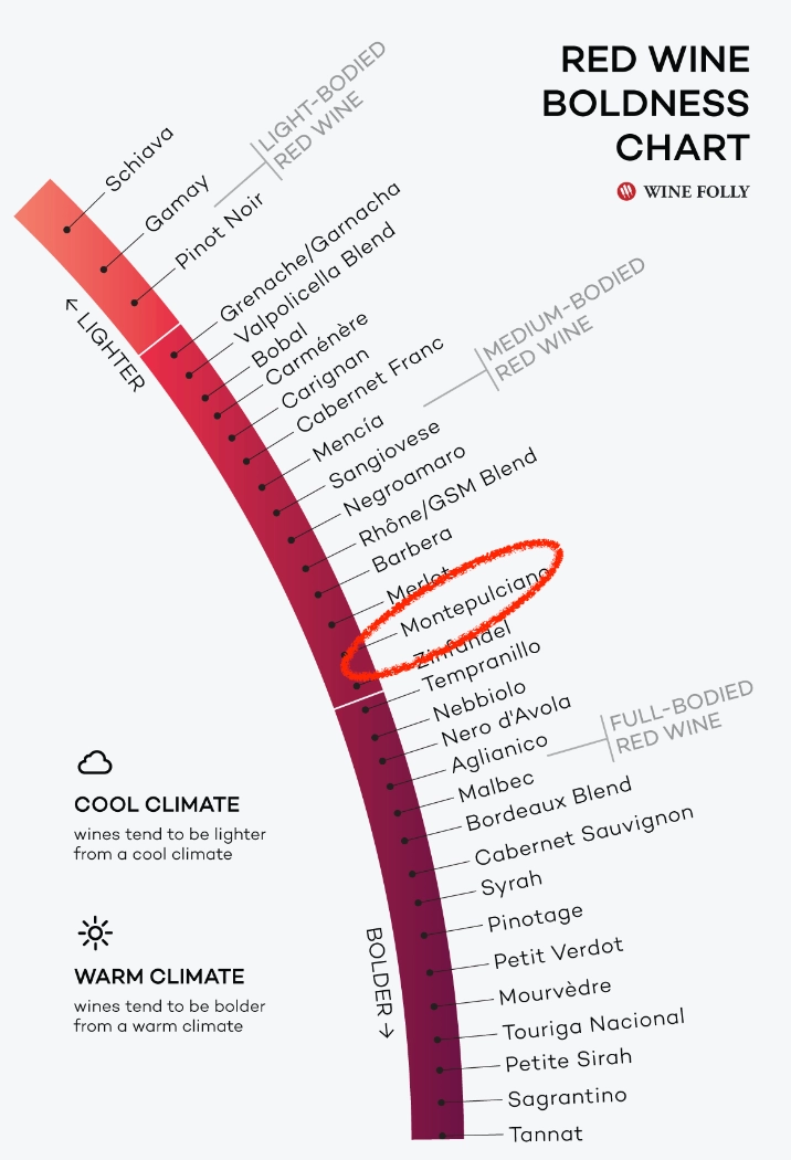 잘 숙성된 몬테풀치아노는 강렬하고 야성적인 풍미를 풍겨요!