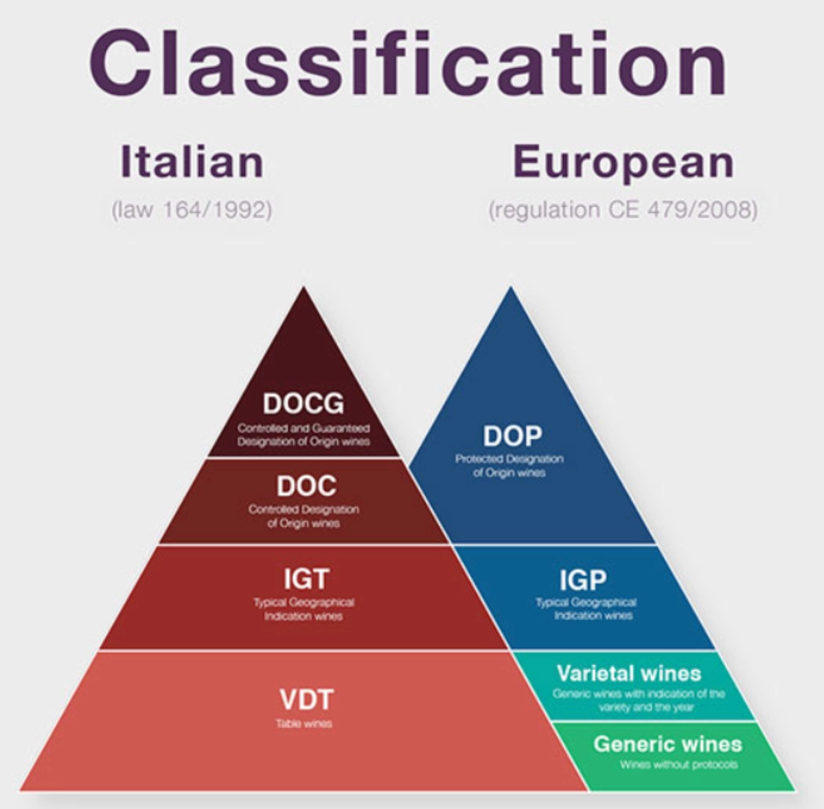 나라별로 등급체계가 모두 다르기 때문에 이탈리아 내에서 통용되는 등급 분류이며, 와인 하나하나의 품질 자체 보다는 그 와인 산지와 해당 산지에 특화된 품종에 대해 품질을 인정받은 등급이라고 보면 될 거 같아요!