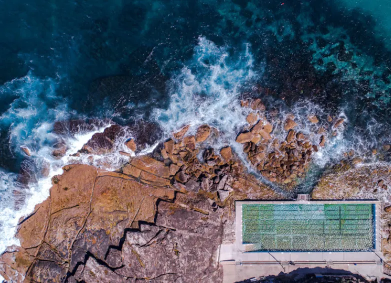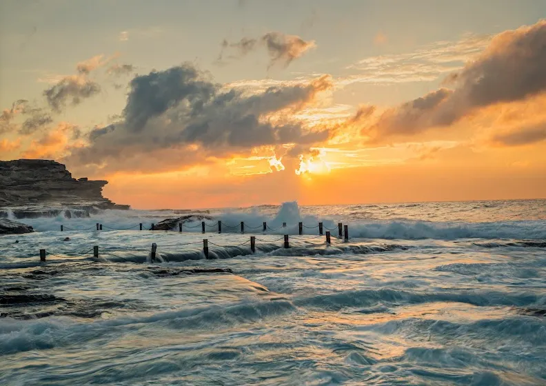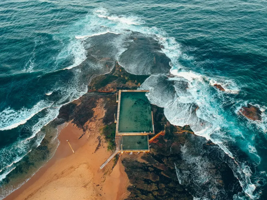 시드니 북부 해변 지역인 모나 베일(Mona Vale)의 바다 수영장이에요. 수영을 하거나 휴식을 취하며 해안선의 전망을 즐길 수 있어요. 뒷편 언덕에 카페와 벤치들도 있어서 편히 앉아서 독서를 즐기기도 좋습니다. 대적인 시설과 자연의 아름다움이 조화를 이루고 있어 시드니 노던 비치 지역 주민들과 여행객 모두에게 사랑받는 공간입니다. 파도가 바위에 부딪치는 모습을 보며 자연을 만끽해 보세요!