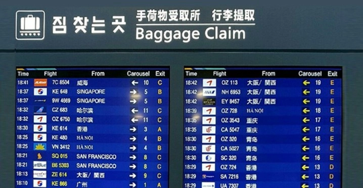 탑승했던 항공편명으로 몇번 구역(레인)에서 짐이 나오는지 확인 후 이동해요!